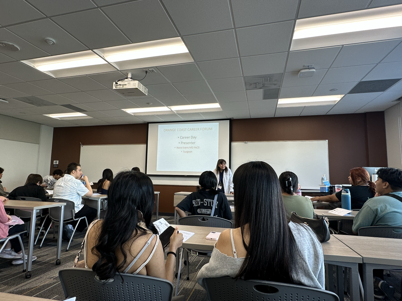 橙县,加州 ---- 3月13日上午,光谱教育组织学生们去前往前往奥兰治海岸学院参加由宪法权利基金会(橙县分会)组织的第41届橙县职业论坛日。该论坛是橙县面向高中生的重要职业探索活动之一,每年都会吸引来自全县多所学校的学生参与。今年活动共有近 1000名高中生齐聚校园,通过一系列职业讲座与互动工作坊,深入探索未来职业发展和了解就业景。本届论坛共设置 21场不同主题的Workshop(职业工作坊),